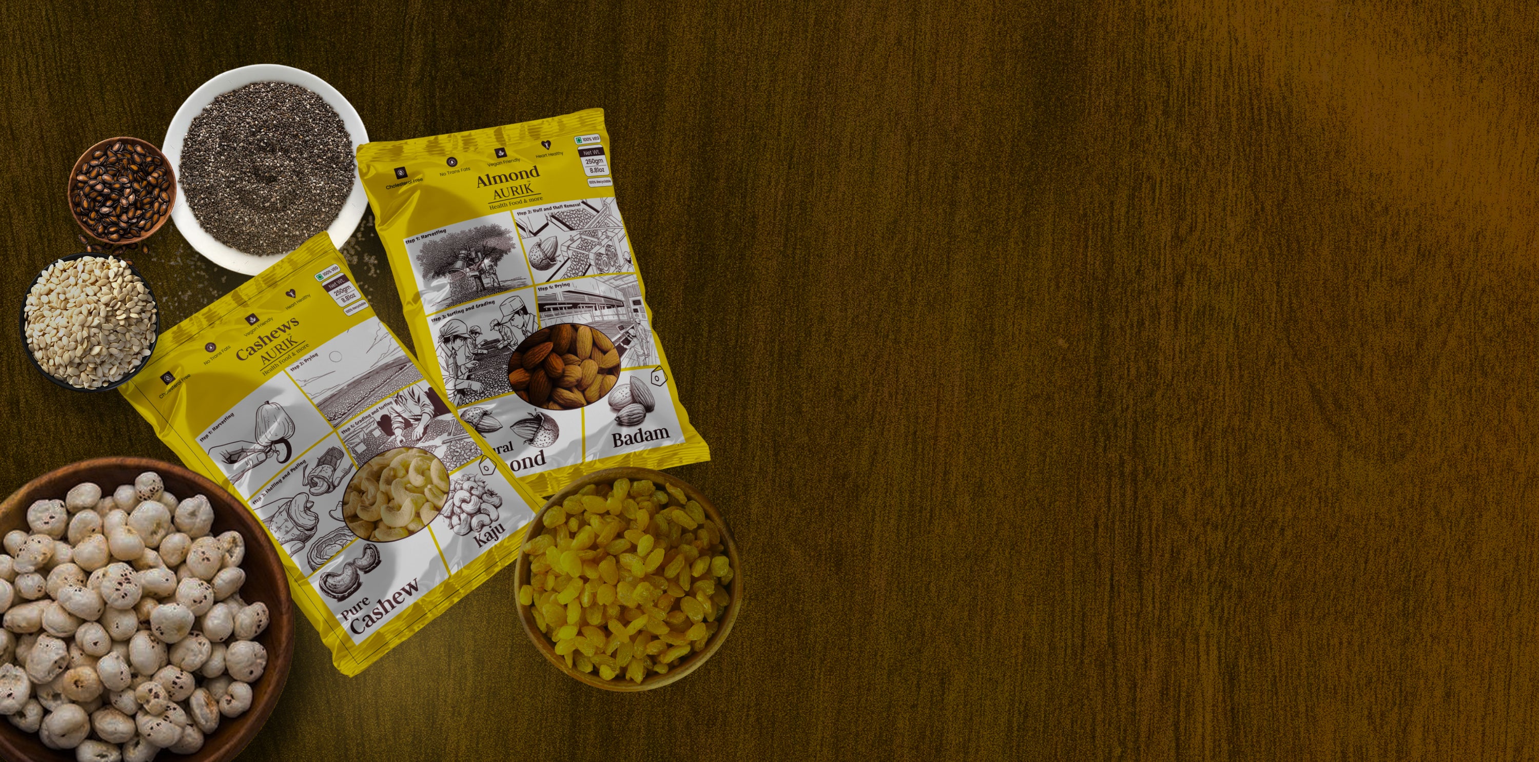 AURIK products are packaged in high-quality, eco-friendly, and hygienic materials that preserve freshness and extend shelf life.